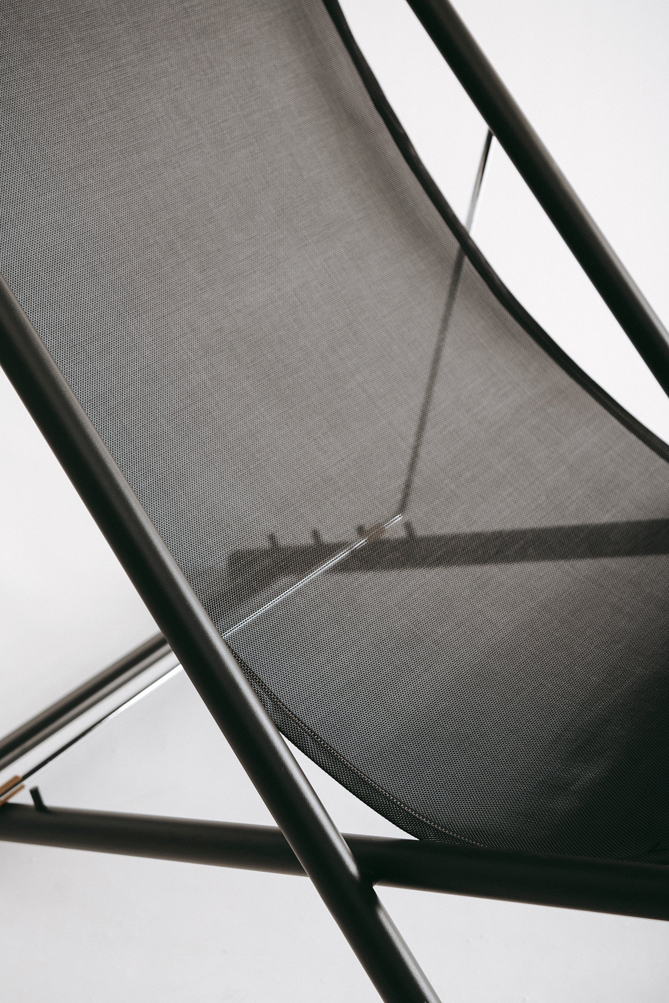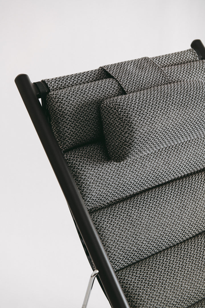 Silla de exterior estructura de aluminio pintado. Respaldo reclinable con 3 posiciones. Incluye colchoneta desmontable con velcro. Ideal para balcones, terrazas y patios. Color Gris Oscuro.